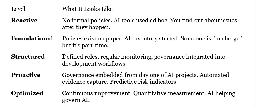 Most organizations today sit somewhere between Reactive and Foundational. That's not a criticism — it's a starting point. The goal is to move deliberately, not skip levels. Skipping levels creates gaps that bite you later.