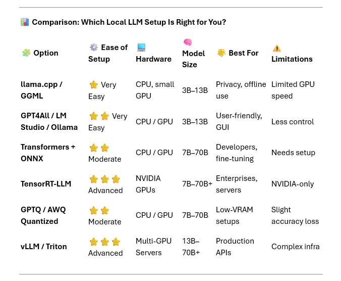 📊 Comparison: Which Local LLM Setup Is Right for You?